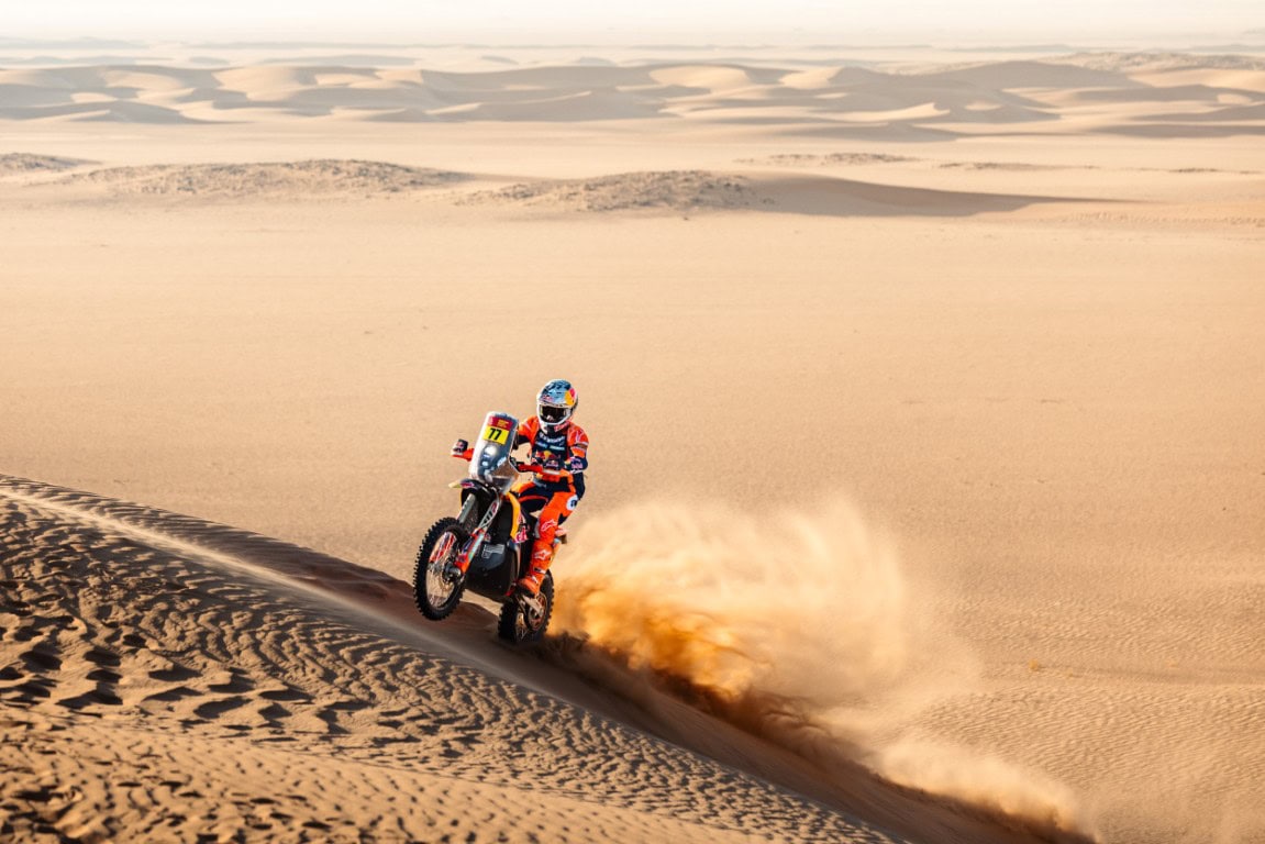 Aan de kop van dat klassement spitste het zich de laatste etappes toe op Honda’s Ricky Brabec en KTM’s Luciano Benavides. Brabec gaf daarbij in de elfde en voorlaatste echte etappe de dagzege en de leiding in het klassement af door vlak voor de finish te stoppen en Benavides voorbij te laten. Dat was een strategische zet, waardoor Brabec vandaag – de laatste echte etappe – zes minuten achter zijn rivaal kon starten, met een verschil in het algemeen klassement van slechts 23 seconden. Brabec kon zich dus richten op Benavides en diens sporen in het zand en met zijn tweede dagzege van deze 2026-rally maakte de Honda-rijder niet alleen die 23 seconden in één klap goed, maar pakte hij meteen een voorsprong op Benavides van 3’43”. Daarmee kan de Amerikaan zijn derde Dakar-titel eigenlijk niet meer ontgaan. Al presteerde Luciano’s broer Kevin dat wel in 2023, al had hij toen slechts twaalf seconden achterstand op Toby Price, die hij wist om te buigen in een rallywinst.