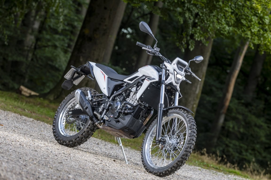 De nieuwe Alp heeft een modern 350 cc-eencilinderblok met vier kleppen, een dubbele bovenliggende nokkenas en benzine-injectie. Het watergekoelde motorblok is ontwikkeld in samenwerking met het Chinese Tayo Motorcycles en keurig afgewerkt. Het heeft zelfs een oliekoeler en is gekoppeld aan een zesbak met een mooie spreiding, van stapvoets in het drukke stadsverkeer tot ruim 130 km/u op de snelweg. Dat laatste is niet zijn metier, maar je hoeft het met zo’n top ook zeker niet uit de weg te gaan. Met zijn 35 pk komt deze Alp prima vooruit en is hij trouwens ook geschikt voor rijders met een A2-rijbewijs.