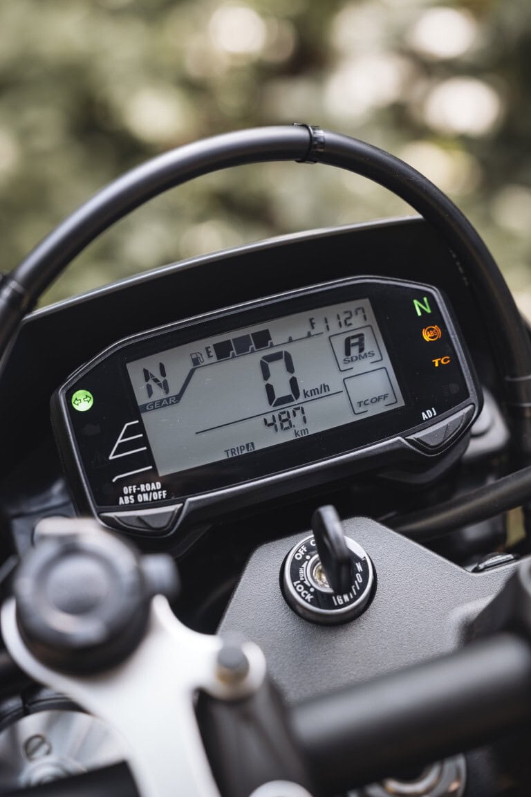 De nieuwe CR-Z4S straalt weer een en al jeugdig enthousiasme uit. Er zijn technisch gezien ook wel behoorlijke stappen gezet. Dat moest ook wel, zeker motorisch, omdat we qua milieueisen inmiddels bij de Euro 5+-norm zijn aangeland, waaraan alle motorfietsen tegenwoordig moeten voldoen om een kenteken te bemachtigen. Ten opzichte van 2007 is het 398 cc-eencilinderblok (boring en slag 90,0 x 62,6 millimeter) bijna volledig nieuw, waarbij er ongeveer twintig procent gewicht is bespaard. De belangrijkste aanpassingen zijn elektronische benzine-injectie, drie motormappings, dubbele bougies, ride by wire (in plaats van gaskabels dus), een onboard-diagnosesysteem en een volledig nieuwe carterontluchting. Bovendien werd ook de cilinderkop herzien, met onder meer nieuwe titanium inlaatkleppen en met natrium gevulde uitlaatkleppen. De koppeling is eveneens nieuw en ook het roestvrijstalen uitlaatsysteem is onder handen genomen en herbergt nu twee katalysatoren. Ook rijwieltechnisch zijn er de nodige stappen gezet met een stalen wiegframe en een aluminium subframe, een aluminium swingarm en voor en achter volledig instelbare vering van Kayaba, met voor 280 en achter 296 millimeter veerweg. De machine kreeg uiteraard offroad-waardige wielmaten van 21 en 18 inch, met IRC GP-410-banden. Qua elektronica is er naast drie rijmodi ook ABS aanwezig, dat op het achterwiel uitschakelbaar is voor offroadgebruik. Daarnaast zit er traction control op met drie standen: normaal, een gravel-modus voor meer wielspin en volledig uit. Welke mapping en traction control-modus zijn ingeschakeld, kun je zien op het overzichtelijke, maar tegelijkertijd ook wel wat rudimentaire LCD-dashboard.