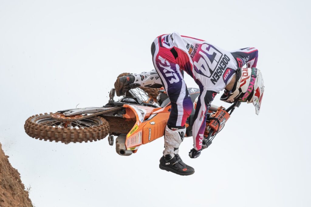 In Trentino, de derde EMX250 van vorig jaar, scoort Doensen knap zijn eerste top-drie-finish en vier wedstrijdweekends verder staat hij in Ernée dankzij een derde en een tweede plaats voor het eerst op het podium, als tweede. Dat resultaat herhaalt hij in Kegums, nadat hij in beide heats kopstarts heeft geclaimd. Een negende plaats overall in Matterley Basin vindt hij zelf ‘niet genoeg’ en in Finland kampt hij met pech en ‘arm pump’. De klap komt echter bij de volgende wedstrijd in het Zweedse Uddevalla: na de start van de eerste manche raakt Doensen buiten zijn schuld betrokken bij een valpartij. Hij breekt zijn linkerenkel en ook worden zijn schouderbanden opgerekt. Het is Doensens eerste echt zware blessure en daarmee was het seizoen voorbij. “Het jaar is niet super verlopen”, is zijn eigen oordeel. “Op sommige wedstrijden was het beter dan verwacht, maar soms ook veel minder. Het oorspronkelijke plan was om na één seizoen EMX250 door te gaan naar de MX2. Zanocz deed het dit jaar heel goed, won ook wat wedstrijden, en dan denk je: shit, ik loop toch wat achter. En hij gaat wél naar de MX2, dus dat is een beetje een teleurstelling. Daar moet je je echter overheen zetten en laten zien dat je goed genoeg bent om in 2027 door te gaan naar de MX2-GP’s. De blessure was mijn eerste blessure waarvoor een operatie nodig was. Ik stond vierde in het kampioenschap en ik had ook als vierde kunnen eindigen. Daar zou ik tevreden mee zijn geweest. Maar ja, dan komt er zo’n tegenslag, zo vlak voor mijn thuiswedstrijd in Arnhem. Daar baalde ik misschien nog het meeste van, want ik voelde gewoon dat dat mijn eerste overwinning in de EMX250 had kunnen zijn.”